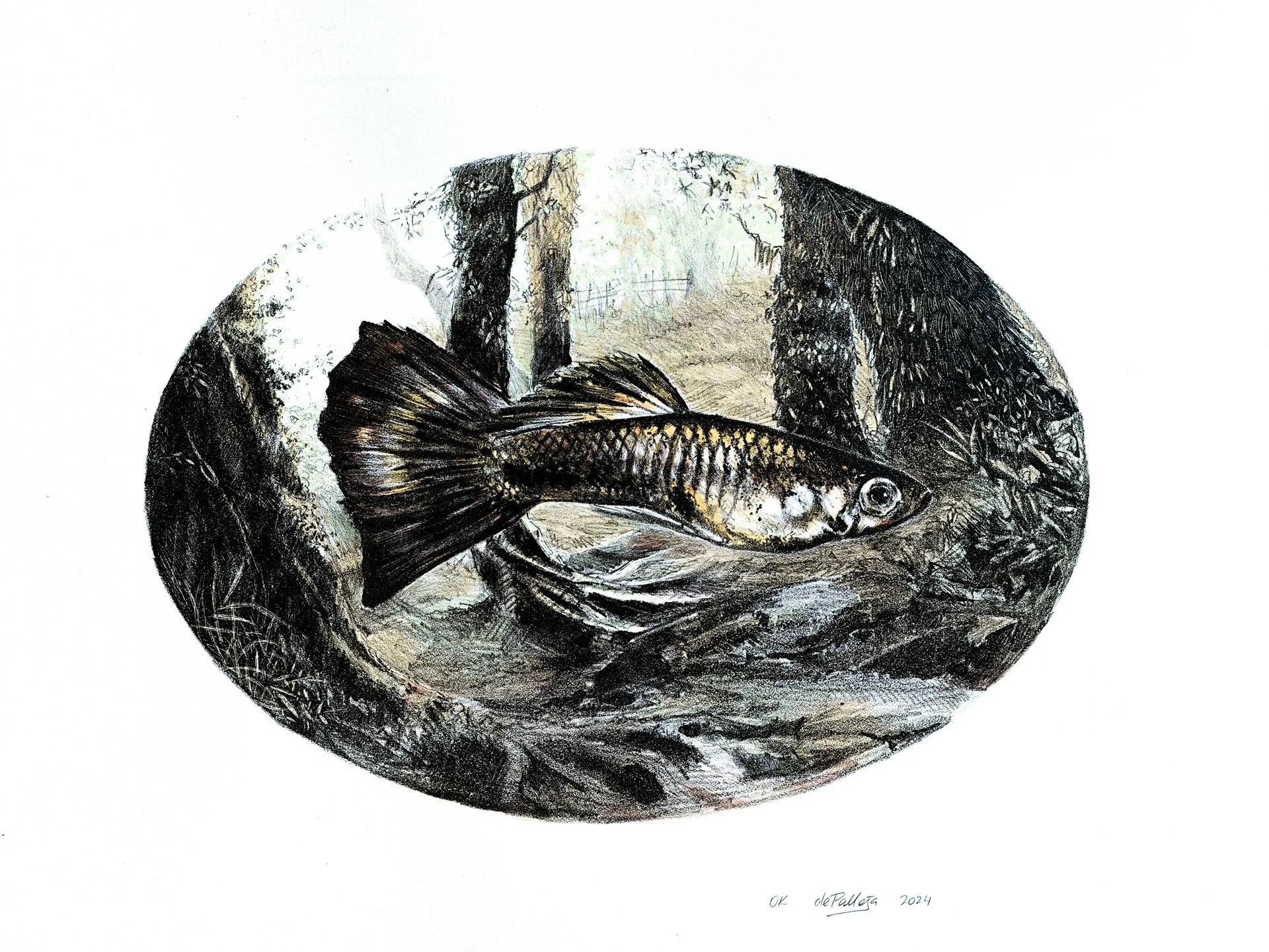 Crayon, water tusche, drypoint on litho stone 45 × 64.5 cm