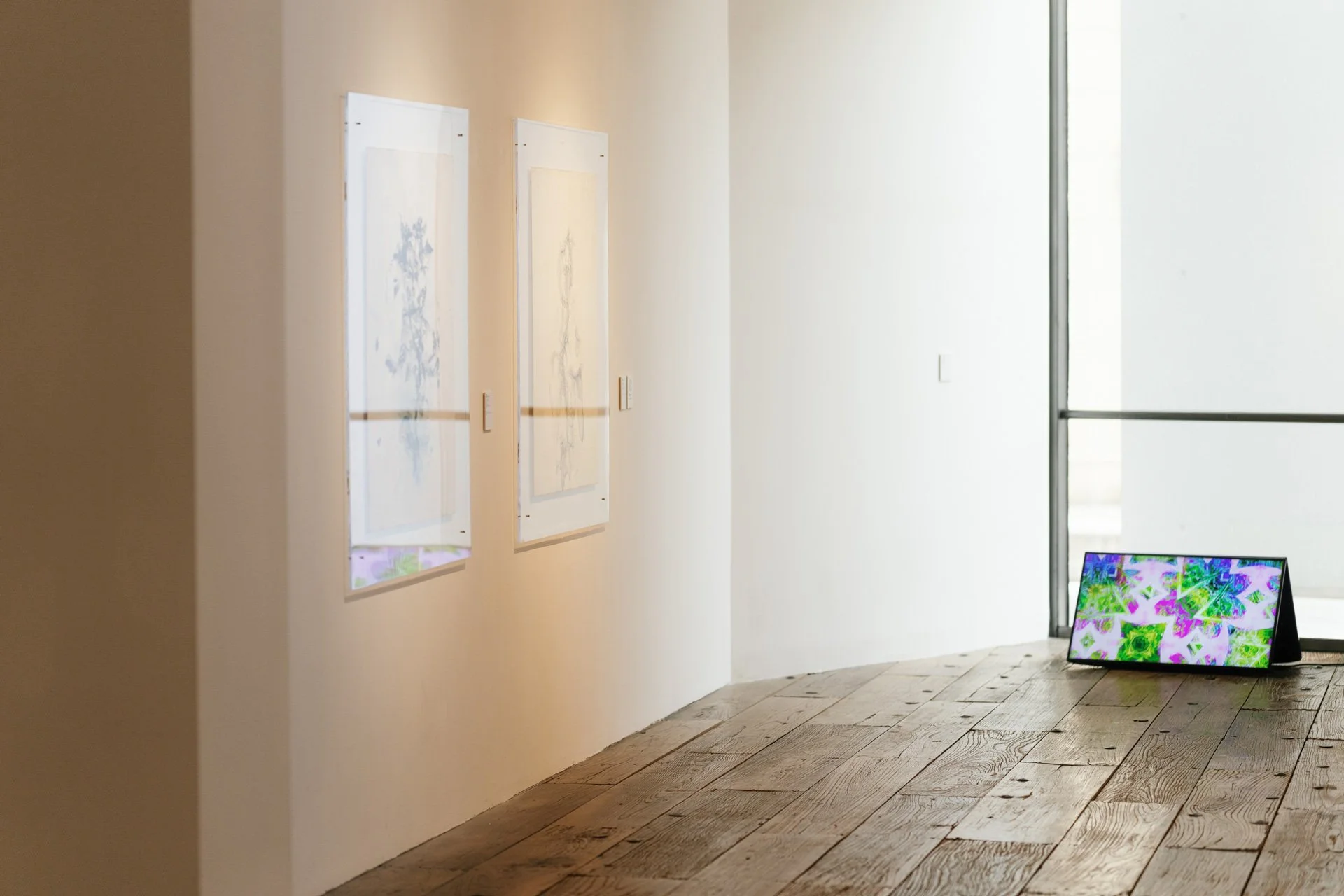 The "Healing" series is the most extensive work in this exhibition. The reason why the "Healing" series is called "Healing" is not only because of the healing and therapeutic feeling it brings to the viewers, but also because these works were originally created by embossing medicinal herbs and plants onto the paper. During the process of creation, the inherent aroma of the herbs, as well as the minerals and other beneficial ingredients, are naturally exposed and condense into a healing fragrance in the air. Therefore, not only the colors of the work bring the viewer a healing sense of returning to nature, but the raw materials of the creation itself leave the juices and smells of the plants on the screen as well, constructing the vibrancy of spring between abstraction and figuration, dream and reality.