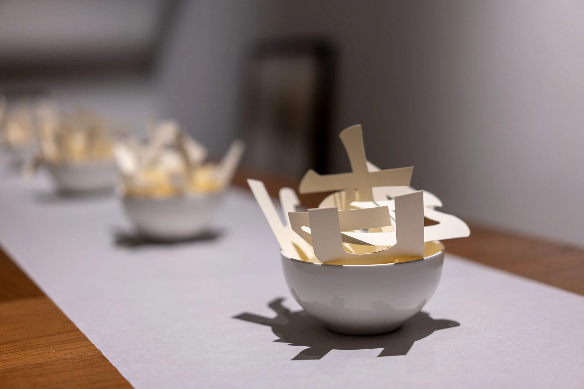 Remaining faithful to his distinctive visual language, an abstraction that composes and interacts with the glyphs of seven different writing systems, Pulcinelli has here created a series of prints infused with a rare clarity. These works compel us to approach closely, to linger on the surface of the paper, to follow the interplay of lines and shadows, and to sense with our eyes the texture of the material as it enters into dialogue with the imprinted characters.